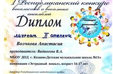 Поздравляем учащихся нашей школы с успешным выступлением на I Республиканском конкурсе вокалистов и вокальных ансамблей "Поющее детство"!!! Волчкова Анастасия – Лауреат II степени, преподаватель Видинеева Вероника Александровна. Халилова Гузель - Лауреат II степени, преподаватель Заслуженный работник культуры РТ Капралова Светлана Анатольевна, концертмейстер Авдеева Татьяна Николаевна. Желаем новых побед и достижений! 31.01.2016