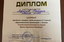 30 марта 2021 г. в отделе профилактики территориального управления в г.Казани ГБУ "Безопасность дорожного движения" проходил городской конкурс "Самый умный ученик по знанию ПДД".Нашу школу и Авиастроительный район представлял ученик 6 А класса Яфизов Райхан.Райхан награжден дипломом лауреата данного конкурса и памятным подарком. 30.03.2021