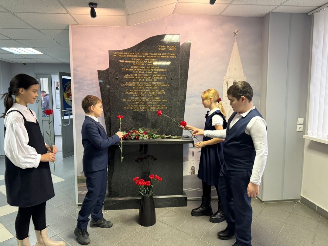 В этот памятный день активисты Движения Первых под руководством Советника по воспитанию Саляховой ГА возложили красные гвоздики к мемориалу погибших сотрудников МВД.