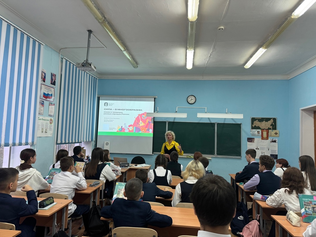 В честь Дня народного единства учитель истории Матяшина Елена Николаевна провела в 7х классах просветительское мероприятие «Сила – в многообразии: язык и традиции разных народов России».