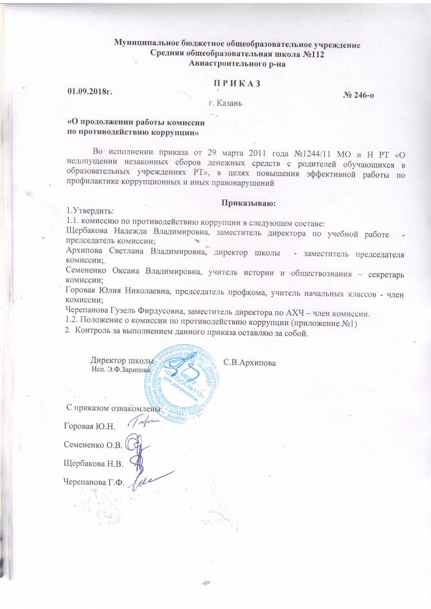 Приказ о проведении противокоррупционных мероприятий №246-о от 1.09.2020г.