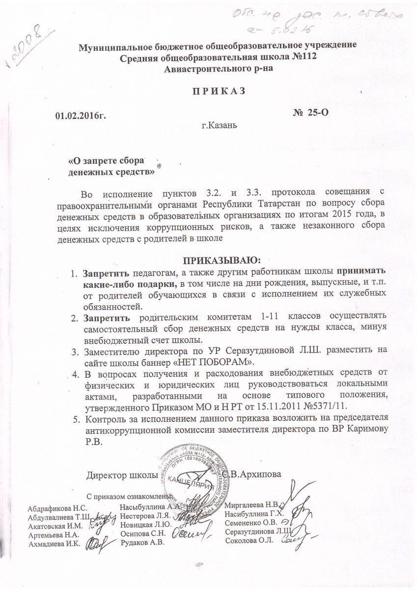 Письмо МОиН РТ "О запрете сбора денежных средств и привлечения материальных ресурсов"