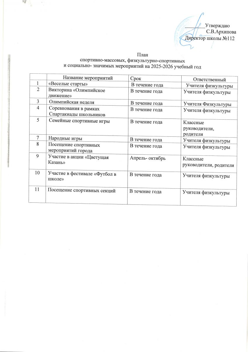 План спортивно-массовых, физкультурно-спортивных и социально-значимых мероприятий на учебный год