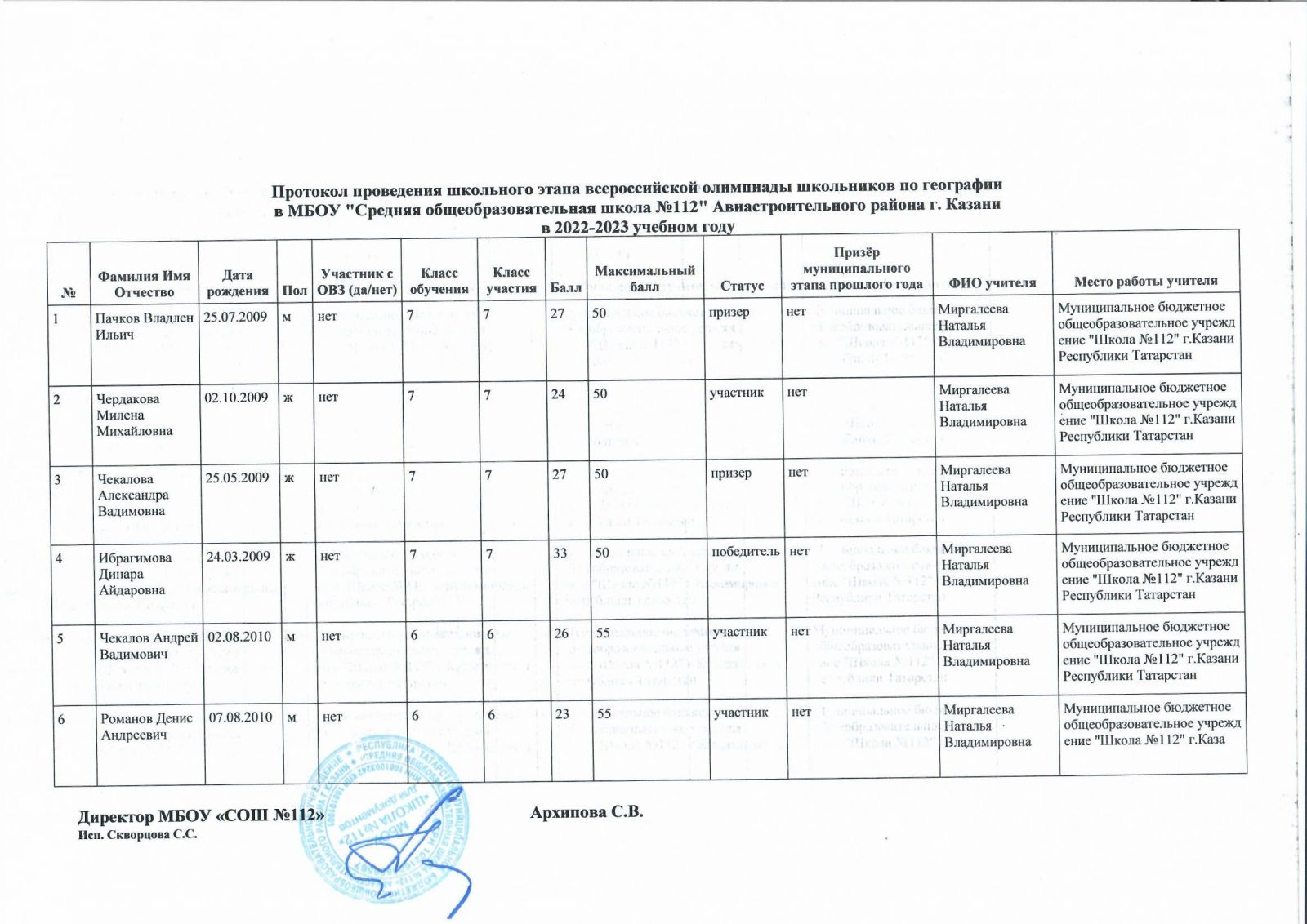 Протокол олимпиады по географии