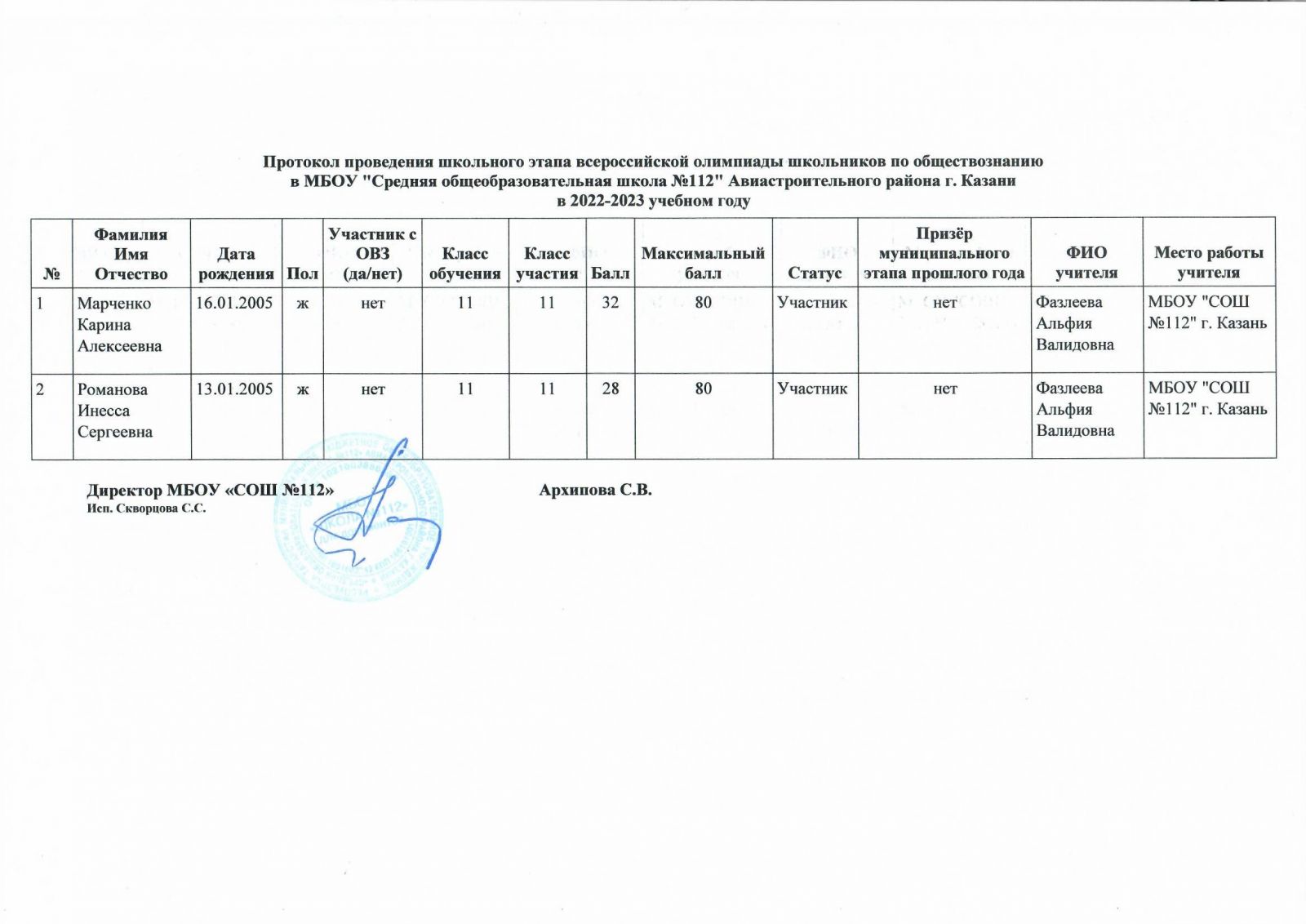 Протокол олимпиады по обществознанию