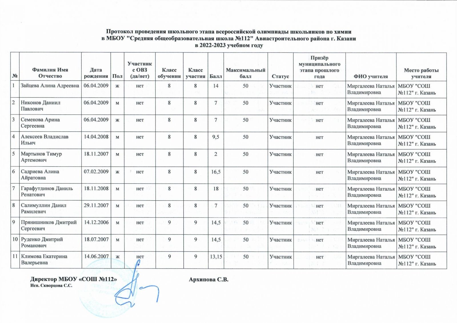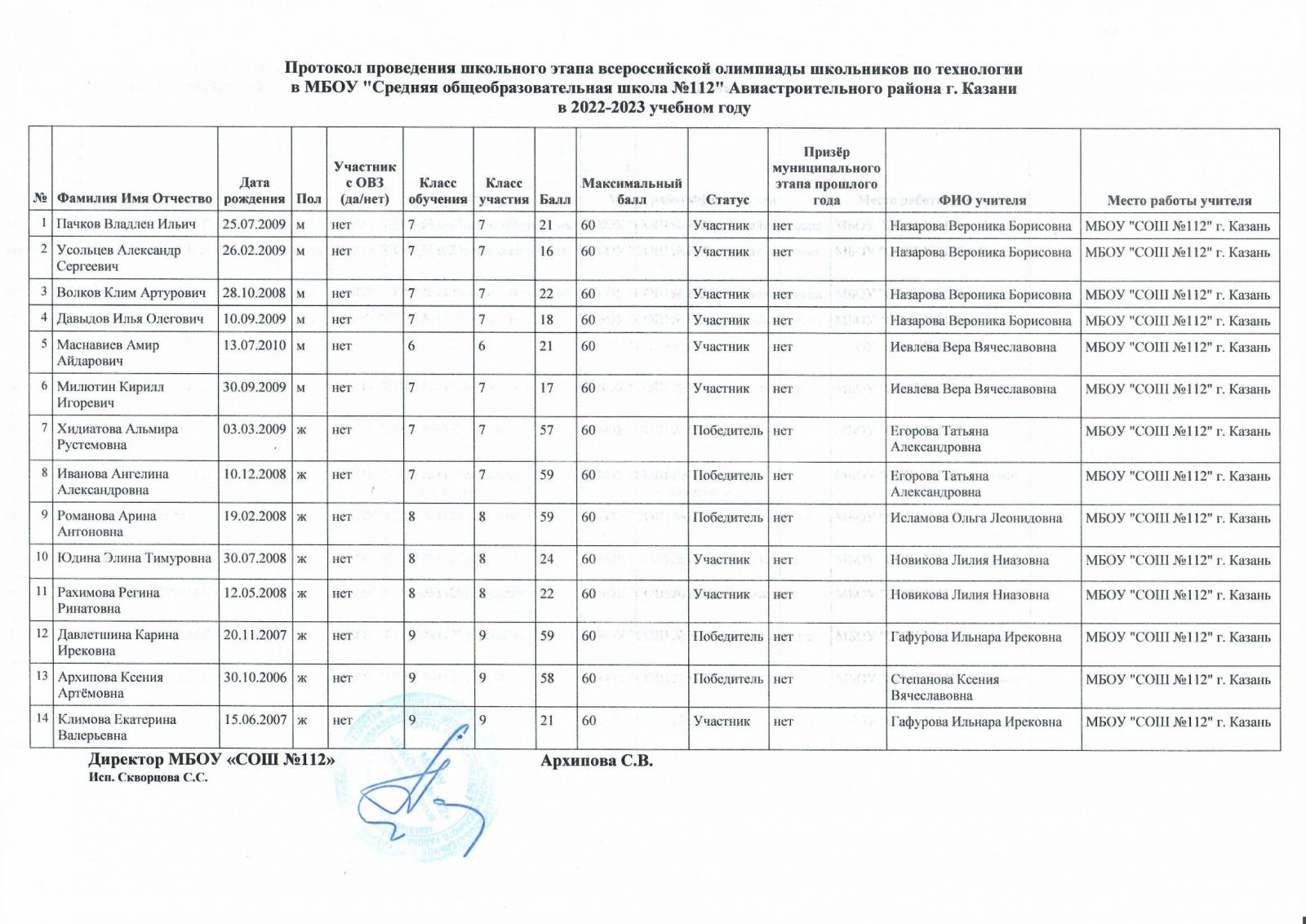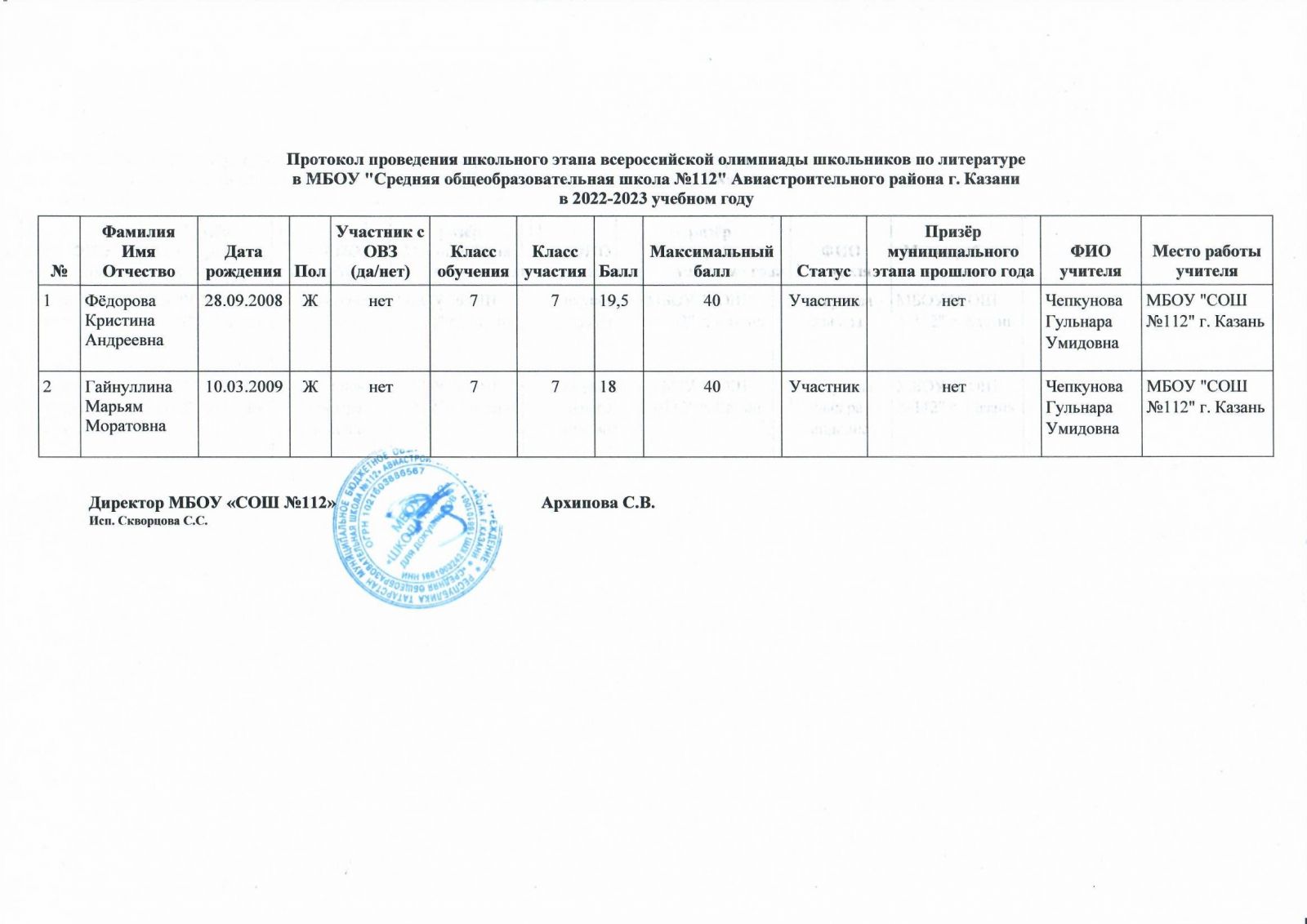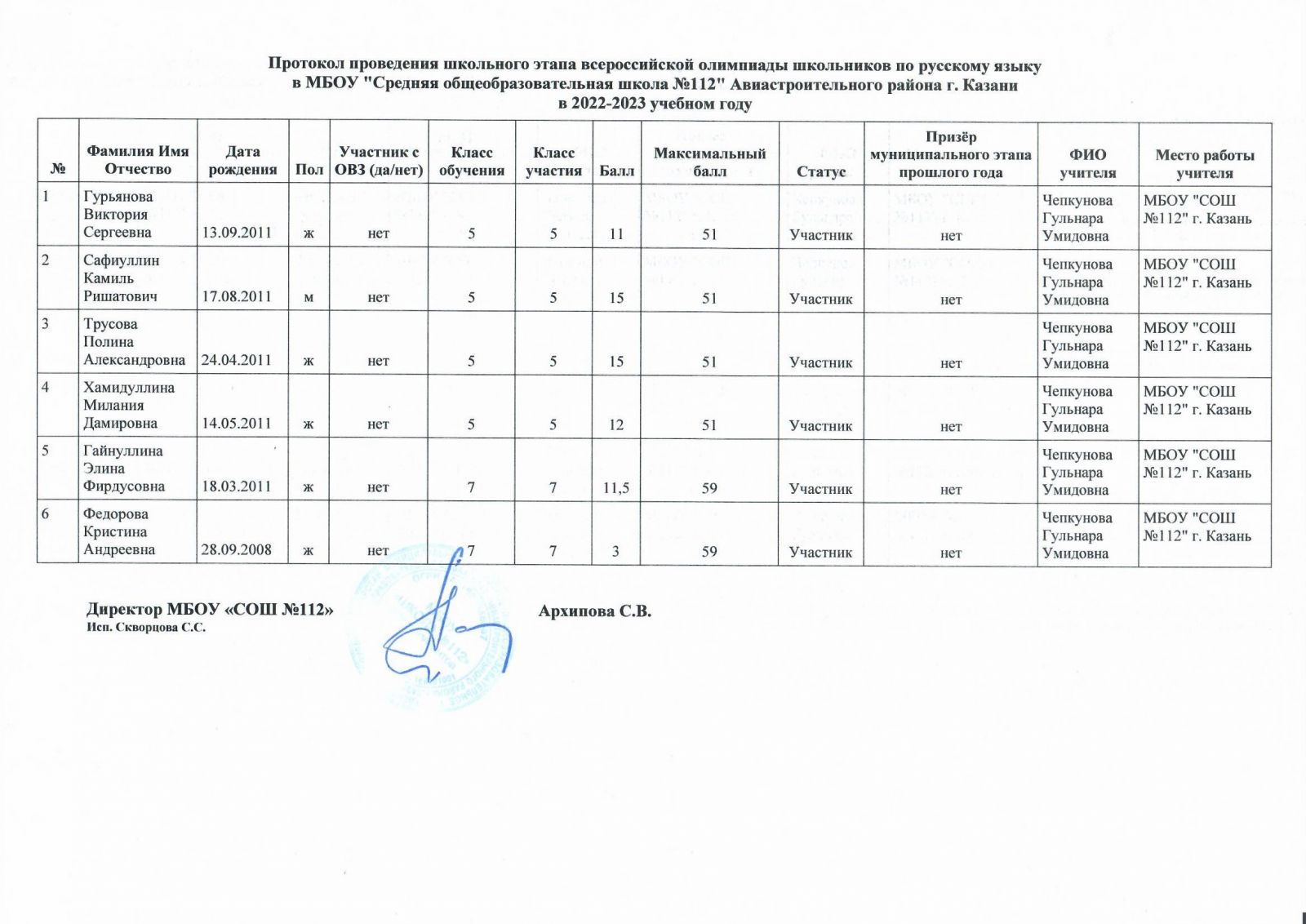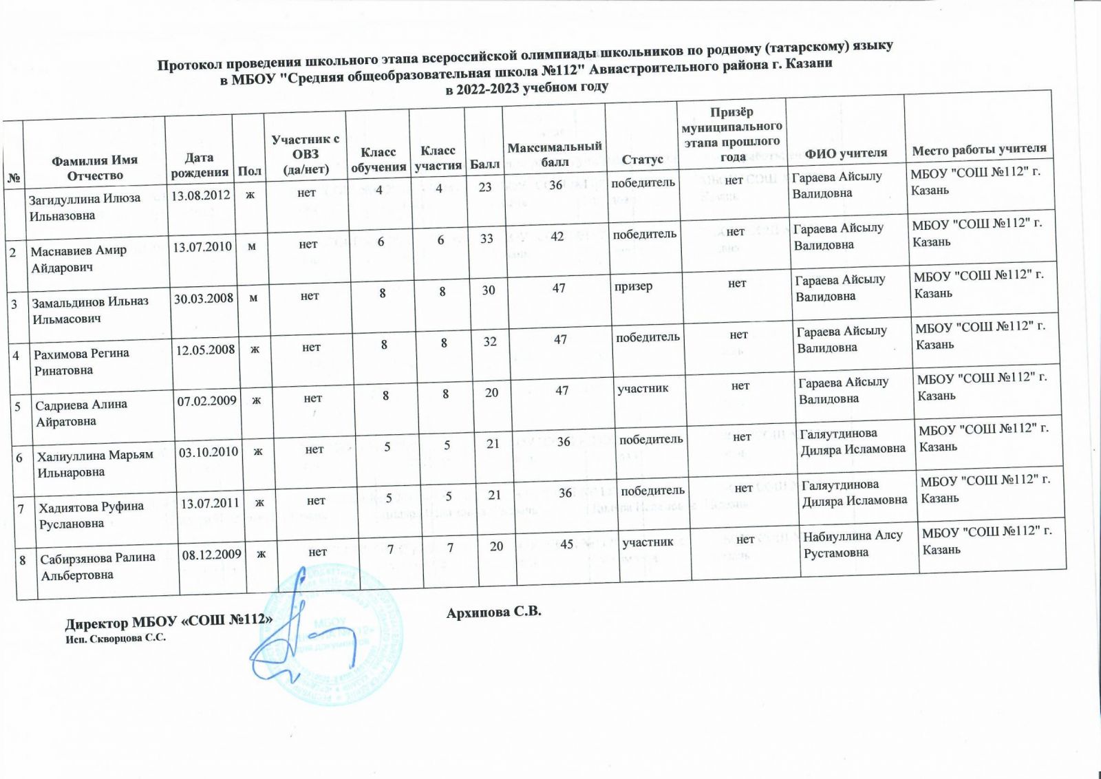 Протокол олимпиады по родному языку