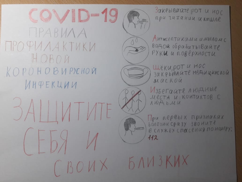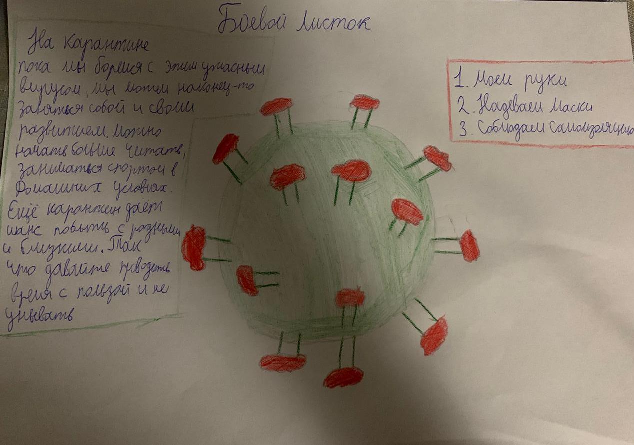 Опубликовано: 25.04.2020Учащиеся МБОУ «СОШ №112» активно присоединились к акции «Нарисуй свой боевой листок «Мы против COVID-19». Учениками 8р класса Камиловым Э, Никифоровым Н., Файзуллиным Н. были выпущены боевые листки.