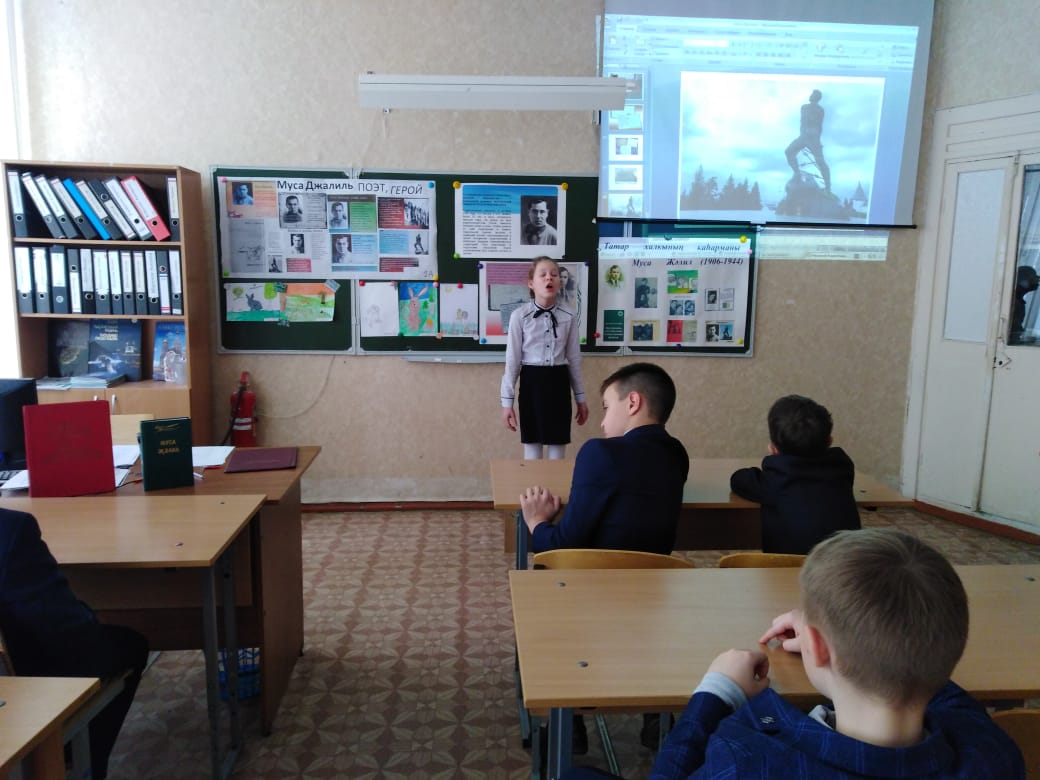 . Мәктәптә шагыйрь иҗатына багышланган «Муса Җәлил - герой-шагыйрь» дигән темага дәресләр узды.