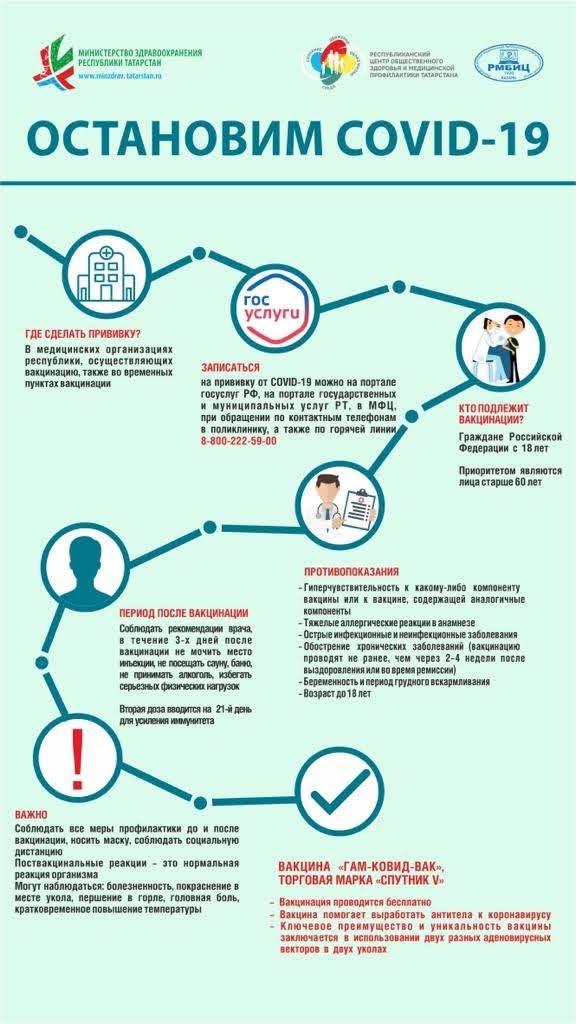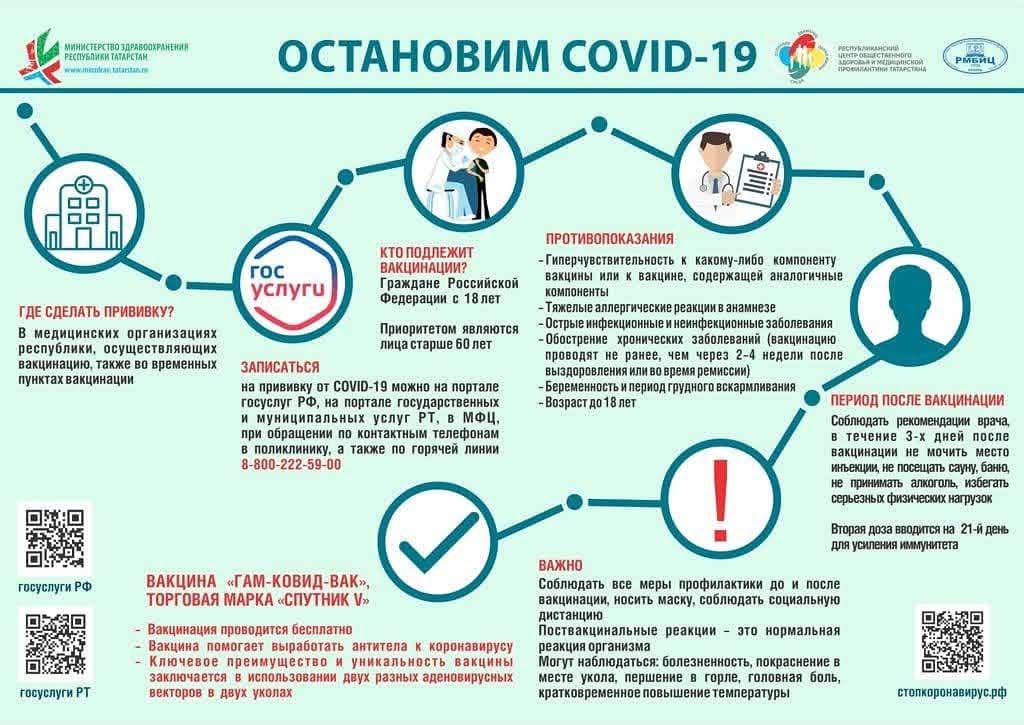 Более 15тысяч татарстанцев уже получили прививку от короновируса. Вакцинация от COVID-19 снизит риски заражения и убережет от тяжелых форм заболивания, что особенно важно для лиц старше 60 лет и людям с хроническими заболеваниями.