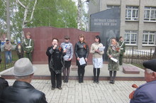 4 мая у памятника школы "Вечная слава" состоялся торжественный митинг, посвященный 67 годовщине Победы в Великой Отечественной войне. На митинг были приглашены 25 ветерана ВОВ и труженика тыла. Также на митинге присутствовали почетные гости: заместитель Главы администрации Авиастроительного и Ново-Савиновского района г. Казани Титов Игорь Юрьевич, представители администрации Авиастроительного и Ново-Савиновского района, главные специалисты Халиуллин Фарит Файзрахманович и Куртымова Неля Масютовна, представитель военкомата нашего района Янсаитов Альберт Ильбекович, поэтесса Нажиба Сафина.