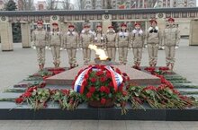В знак благодарности и уважения к подвигу героев юнармейцы «Школа №115» возложили цветы к Вечному огню.