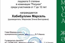 Поздравляем Хабибуллина Марселя, ученика 2 А класса (классный руководитель Миронова Э.В.) с дипломом Лауреата II степени в республиканском конкурсе среди детей "Красная ромашка". Желаем не останавливаться на достигнутом и покорять новые вершины.