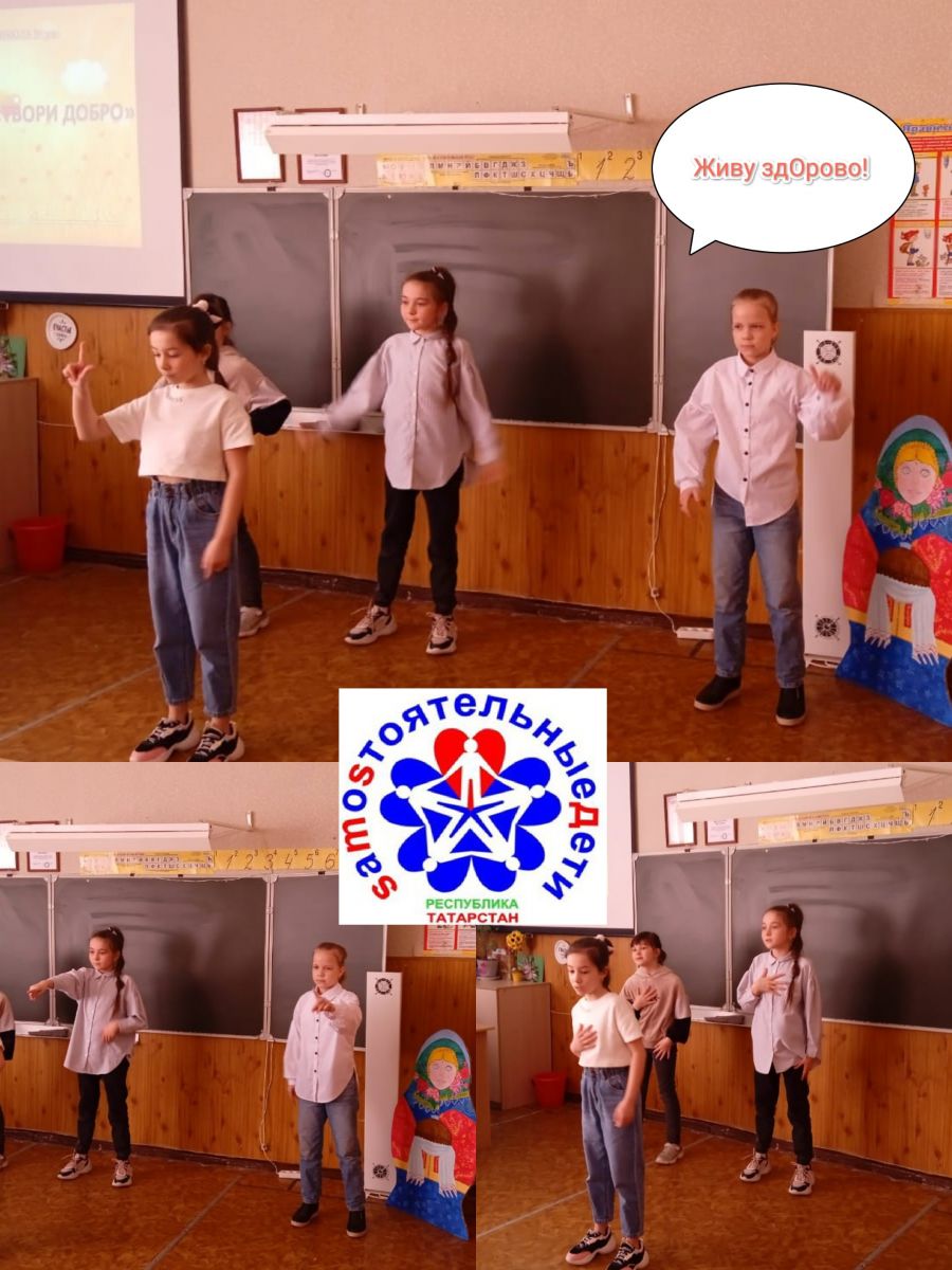 Сегодня 6 апреля. в рамках Марафона участники проекта smsдети провели в школе флешмоб для учащихся начальной школы.