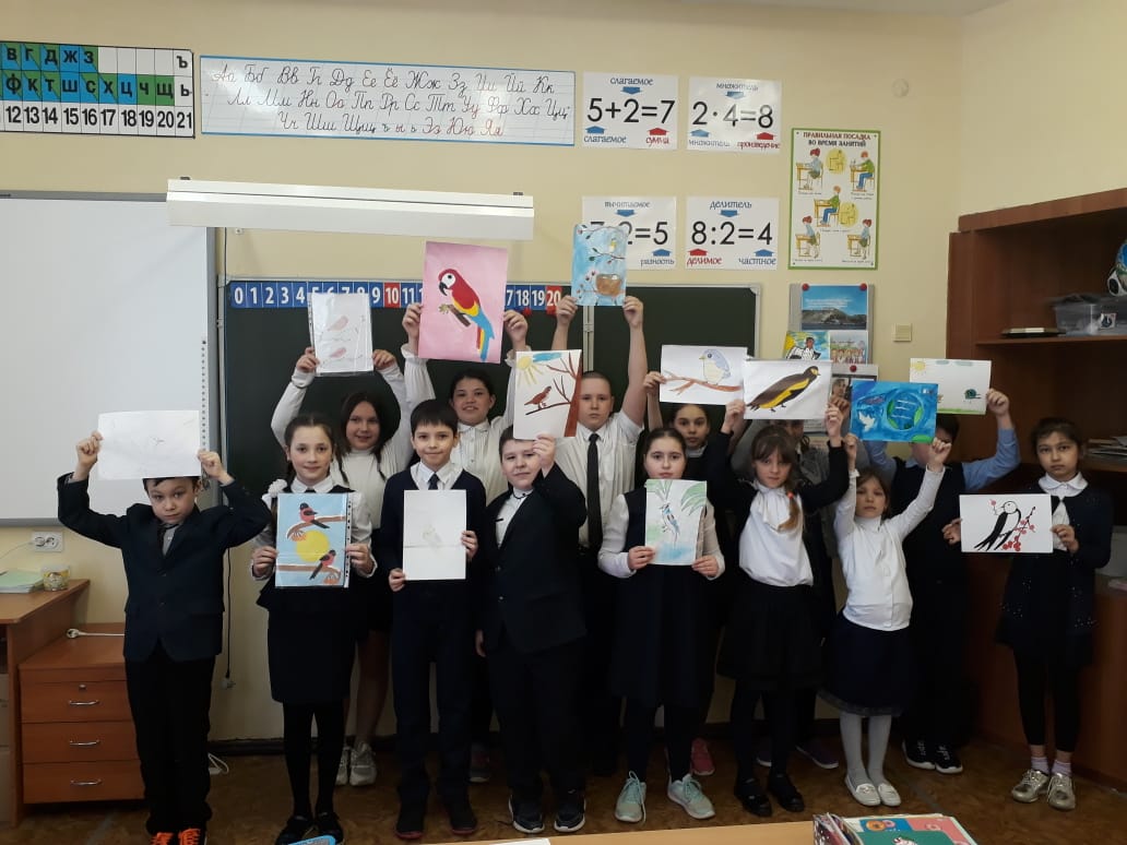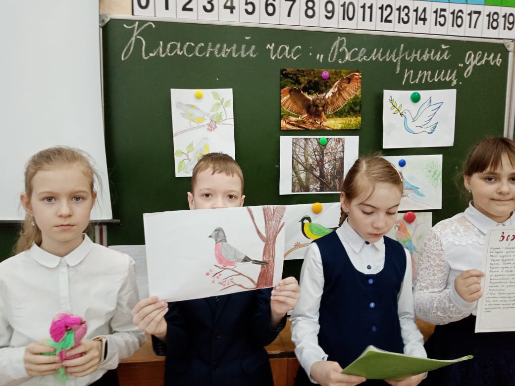 День птиц - это не только годовщина Конвенции, но и время прилета пернатых с зимовок. В России праздник отмечали с 1994 года, но и раньше возвращение перелетных птиц праздновалось потому, что означало наступление весны. Сегодня в нашей прошли тематические уроки посвященные этому дню, а так же учащиеся начальной школы рисовали рисунки с изображением птиц.