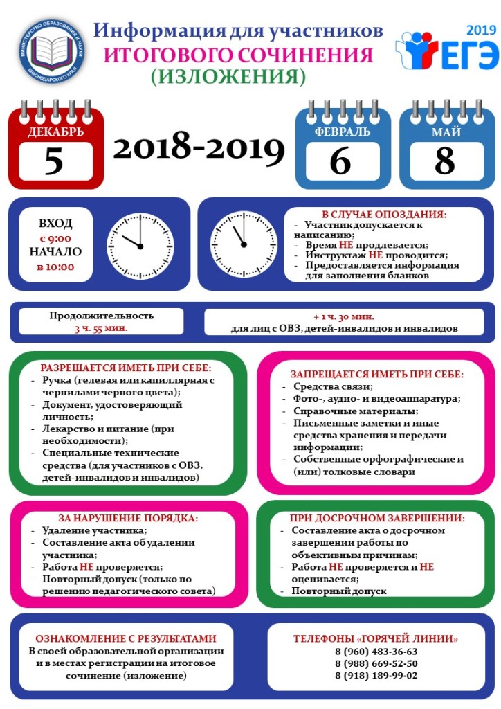 Информационные плакаты по вопросам проведения сочинения/изложения
