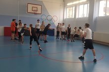 Сегодня в пришкольном лагере "Созвездие" прошли весёлые старты, ребята провели разминку и поиграли в мяч