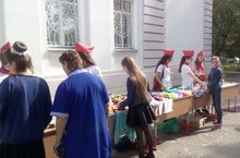 Сегодня в школьном дворе очень весело и шумно. В день пионерии мы решили провести благотворительную ярмарку, все вырученные средства пойдут на лечение онкозаболевших детей нашего района.
