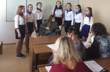 В здании педагогического университета прошел отборочный тур, наши девочки из 9 "А" класса исполнили песню под гитару «Je n’en veux pas», 23 апреля финал. Пожелаем им удачи!