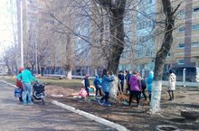 Сегодня, в такую отличную погоду, во дворе школы был организован середник, учителя и ученики дружно убирались!