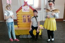 В дни каникул по прежнему работает театральный школьный кружок "МЕМ". Сегодня маленьким детям из школьного лагеря был показан спектакль "Заячья избушка", конечно же добро всегда побеждает зло!