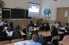 В рамках проведения Международного дня борьбы с коррупцией в школе были проведены классные часы с демонстрацией слайдов. В начальных классах был показан мини-спектакль "В России надо жить честно!"