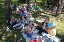 Ребята пришкольного лагеря "Светофорик" посетили парк "Крылья Советов" и полакомились мороженым .
