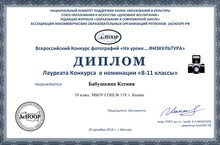 Ученица 10 А класса Бабушкина Ксени стала лауреатом Всероссийского конкурса фотографий « На уроке…Физкультура. Мы поздравляем Ксюшу и учителя физической культуры Павлову Альбину Николаевну