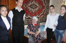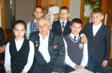 Ученики 5 класса поздравили ветерана Фасхутдинова Зинура Киямовича с наступающим праздником. Как всегда, герой с супругой очень тепло встретили ребят: накрыли на стол, угостили вкуснейшим яблочным соком собственного приготовления и другими сладостями. Зинур Киямович очень интересно рассказывал о трагических событиях послевоенного времени, об Украине, где он воевал. Ребятам очень понравилось в гостях у героя, они много спрашивали о войне, о солдатах, о сражениях.