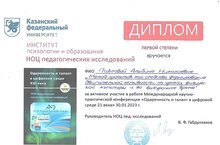 В конференции приняли участие ученые КФУ, Академии наук Республики Татарстан, методисты ИМО Авиастроительного и Ново-Савиновского районов, учителя школ разных типов, студенты, психологи, педагоги детских садов и центров дополнительного образования. В ходе работы трех секций педагоги школы и гости поделились опытом работы по формированию и поддержке творческого потенциала учащихся массовой школы. По итогам работы конференции была принята резолюция, изданы сборник работ участников конференции и электронный журнал «Под углом 112 градусов». Мы поздравляем Альбину Николаевну с успешным выступлением на конференции.