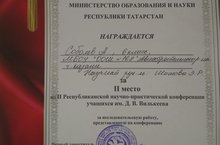Учащиеся МБОУ «ООШ № 168» Соболев Антон и Герасева Антонина приняли активное участие во II республиканской научно-практической конференции учащихся имени Джавдата Валеевича Вилькеева, которая проходила в Лицее №23 г. Казани. Поздравляем Соболева Антона, занявшего II место! Администрация школы выражает благодарность учителю биологии и географии Шишовой Э.Р. за подготовку призера конференции!