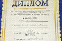 Поздравляем ученика 6 класса Соболева Антона, лауреата районной экологической конференции «Мой город». Благодарим учителя биологии и географии Шишову Э.Р. за подготовку участника конференции!