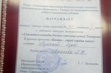 Поздравляем ученицу 6 класса Ахметсафину Аделину, занявшую 3 место в районном конкурсе экскурсоводов , посвящённом 100-летию ТАССР «Сказанием встаёт Казань, столица новой Татарии», в рамках проекта «Казань-город сердца моего» в ЦВР Авиастроительного района. Выражаем благодарность педагогу дополнительного образования Валиевой Л.Н., подготовившей призера.