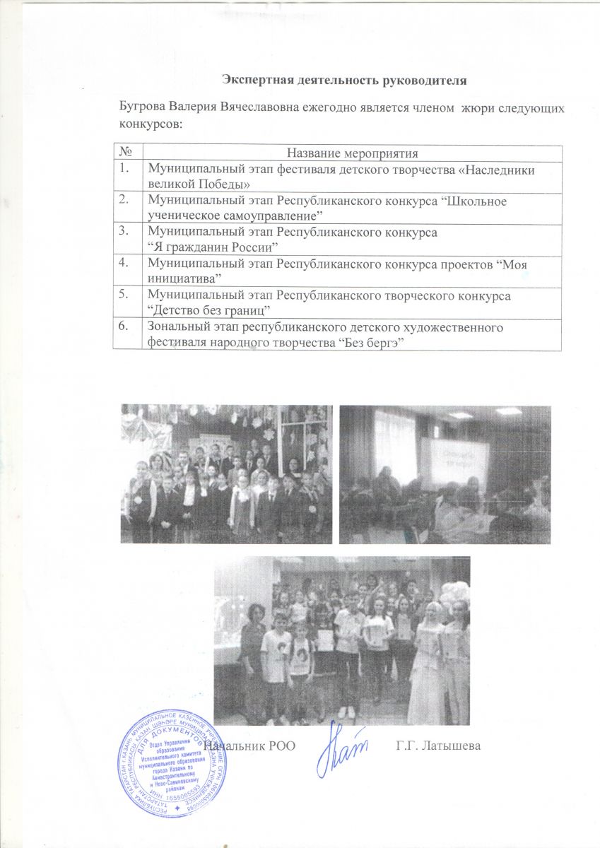 - Благодарственное письмо Управления образования Исполнительного комитета муниципального образования города Казани за высокий уровень организации и проведения очного тура городского конкурса «Ученик года-2016» среди учащихся 9-11 классов