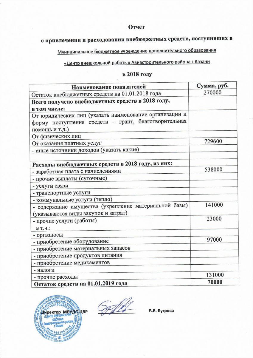 Отчет о привлечении и расходовании внебюджетных средств за 2018