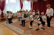 Учить выполнять действия по инструкции воспитателя, выполнять построение в круг, подпрыгивать;