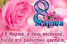 С Международным женским днем 8 Марта! 08.03.2017 Пришла весна, растаял снег. Желаем быть счастливей всех И поздравляем с Женским днем. Пусть только радость будет в нём! © http://pozdravok.ru/pozdravleniya/prazdniki/8-marta/korotkie/
