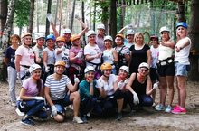 В праздничный день коллектив нашего детского сада принял участие в командной игре, которая прошла в веревочном парке "Паутина". Обе команды храбро соревновались в силе и ловкости, собирая фишки, спрятанные на деревьях на высоте 5, 10 и 15 метров. Собрав равное количество фишек обе команды с ветерком прокатились на побелном троллее. второй раз за время существования скай-парка команды сыграли в ничью! Это говорит о том, что коллектив детского сада сплоченный и веселый! Так держать1 Пусть такой активный отдых станет нашей доброй тарадицией! Только вперед! Только вместе!