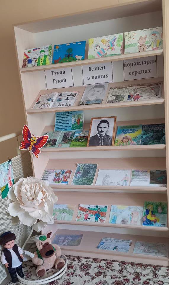 В нашем детском саду прошла тематическая неделя, посвящённая жизни и творчеству татарского поэта и писателя Габдуллы Тукая. В детском саду в рамках тематической недели для детей была организована выставка детских рисунков по произведениям поэта. Для ребят был организован просмотр презентаций его биографии для разного возраста детей. мультфильмов «Суанасы», «Шүрәле», «Бала белән күбәләк», «Мышь попавшая в молоко», которые особенно нравятся детям и учат добрым, положительным поступкам, умению отличать добро и зло. В группах дети делали поделки, читали сказки и учили стихотворения великого поэта.