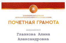 Почетной грамотой Управления образования Исполнительного комитета города Казани награждена преподаватель эстрадного вокала Глазкова Алина Александровна.