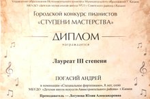 Поздравляем Погасия Андрея (преп. Юлия Александровна) с успешным выступлением на городском конкурсе пианистов "Ступени мастерства".