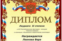 Поздравляем ученицу фортепианного одела с призовым местом (Лауреат 2 степени)
