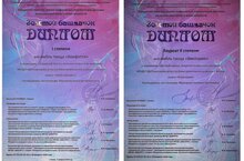 Задайханова Амина - лауреат 1 степени , Сафонова Мария - лауреат 2 степени (класс преподавателя Сосновской Ю.А.)