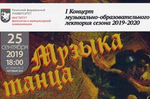 25 сентября состоялся концерт музыкально-образовательного лектория сезона 2019-2020 "Музыка танца" в актовом зале КФУ "Института филологии и межкультурной коммуникации". В концерте участвовали учащиеся струнно-смычкового отделения кл. преп. И.В. Абросимовой, конц. Бурова В.В.