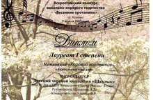 Всероссийский конкурс вокально-хорового творчества "Весенние проталины" состоялся в г. Казань 9 апреля 2016 года. В конкурсе принял участие Хоровой коллектив "Шатлык" преподавателя Шараповой Л.Д. С результатами конкурса можно ознакомиться далее...