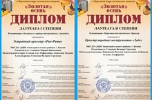 Уже второй сезон Казанский музыкальный колледж им. И.В.Аухадеева проводит Всероссийский конкурс исполнительского мастерства "ЗОЛОТАЯ ОСЕНЬ". Участие в конкурсе такого уровня- это возможность проявить свой талант, мастерство и высокий профессионализм! Весь коллектив ДШИ Авиастроительного района от души поздравляет участников конкурса: Эстрадный оркестр "Рио-Рита" - лауреат I степени, оркестр народных инструментов "Ладъ"- лауреат II степени. Выражаем огромную благодарность Семеновой М.Н., Галеевой А.Р., Леонтьевой Т.А., Семеновой В.С., Перминовой Н.А., Акбашевой Г.А. за подготовку участников конкурса. Так держать!