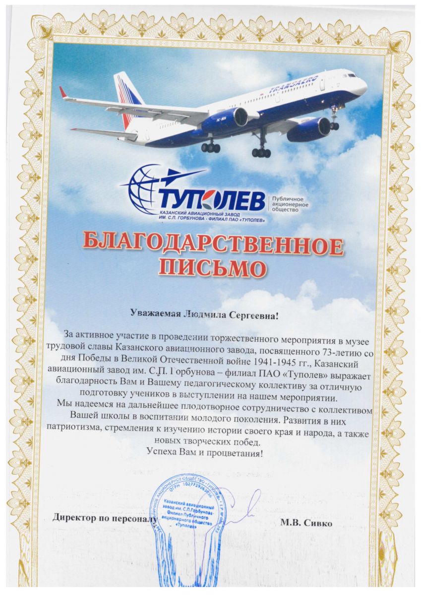 6. Благодарственное письмо КАЗ им.Горбунова