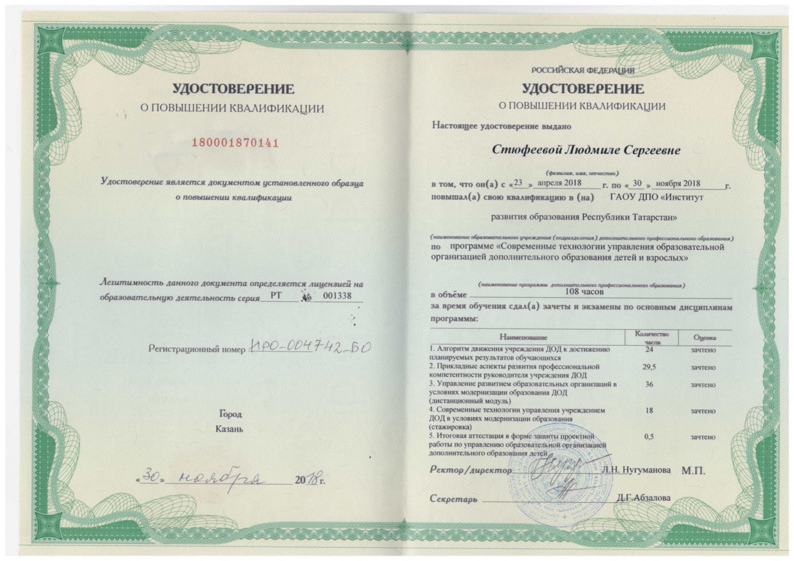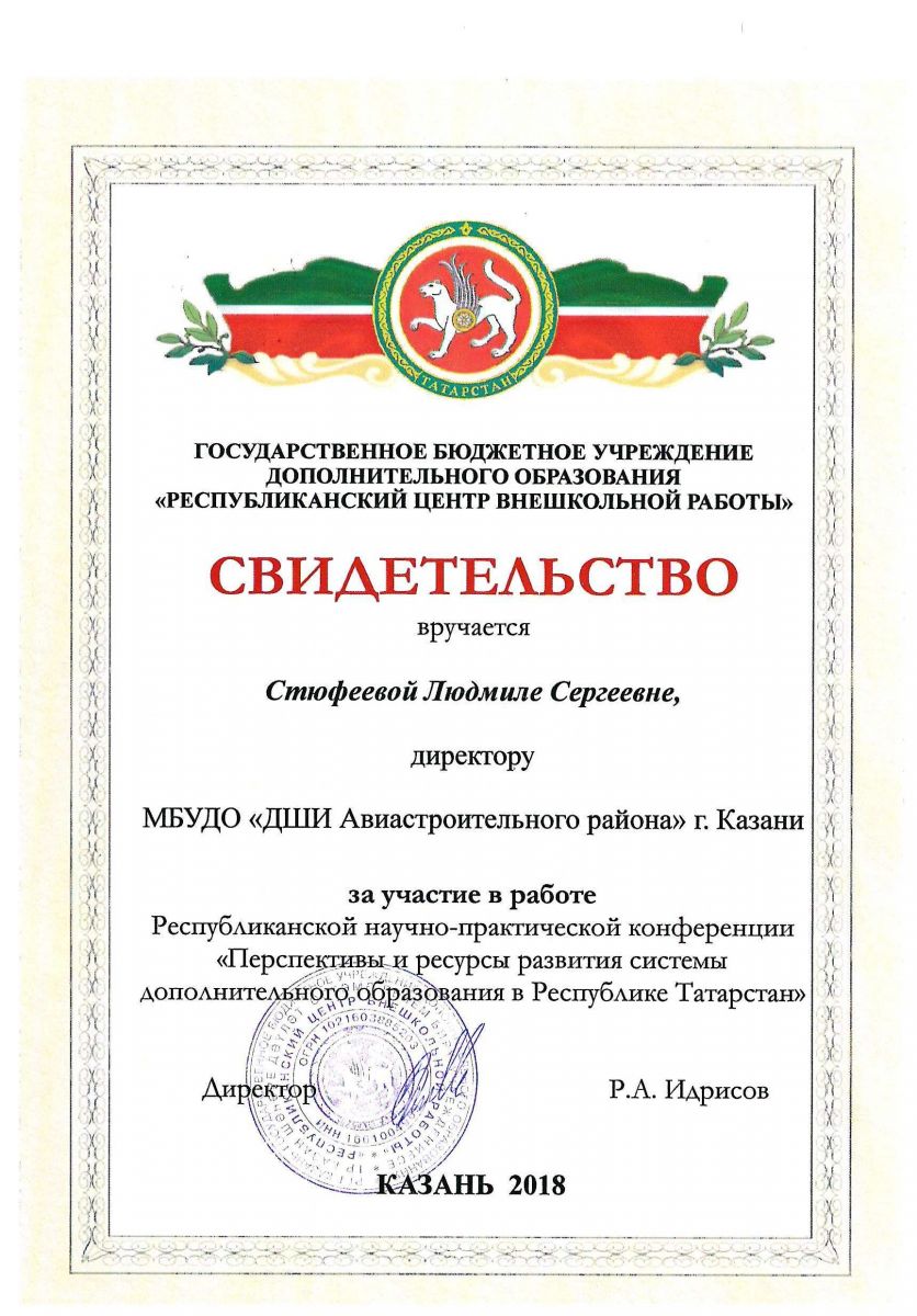 1. Удостоверение о повышении квалификации ГАОУ ДПО "ИРО РТ" 2018г.