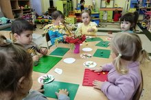 В преддверии праздника "Дня дошкольного работника" педагоги совместно с родителями организовывают выставку из даров осени. Каждый год осенняя выставка проходит маштабно, занимает весь холл второго этажа детского сада. Участниками выставки становится каждая семья - утверждаю, что КАЖДАЯ. Стоит только нескольким поделкам из групповых помещений плавно пересилиться в холл, как каждый ребенок (который еще не принес поделку), проходя каждое утро и каждый вечер с родителями мимо этой красоты, мимо необыкновенных и чудных "произведений искусств", на следующий день приносит продукт своего творчества. Воспитатели организовывают экскурсии по выставке, а дети рассказывают и с гордостью показывают какую поделку они сделали с родителями. Выставка проходит с 23 по 30 сентября.