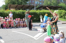 Сегодня в нашем детском саду прошло веселое, красочное и очень яркое развлечение "День радуги". Много веселых эстафет, конкурсов, игр приготовили главные герои "Лучик" и "Тучка". Дети и взрослые с удовольствием резвились на красочно украшенной лужайке, получили массу положительных эмоций.