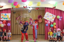 Наши педагоги просто волшебники! Устроили праздничное развлечение, подарили много шуток, радости, веселья, устроили настоящее шоу - мыльных пузырей!